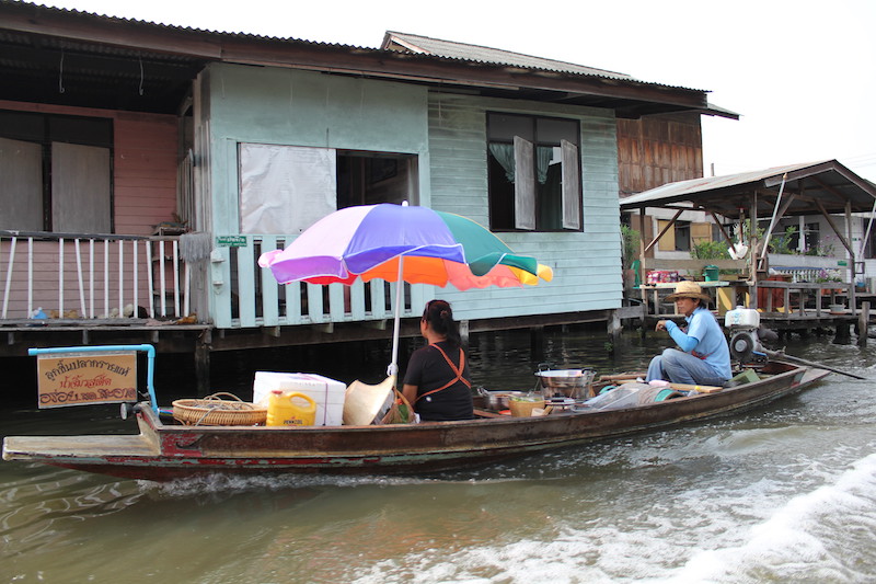 Poniżej zdjęcie przedstawia bazarek na łodzi – taki pływający catering. Jest ich mnóstwo pływających od domu do domu i serwujących gorące dania wprost z łodzi. Ja byłem już po lunchu więc się nie skusiłem – ale zapachy były przednie 🙂