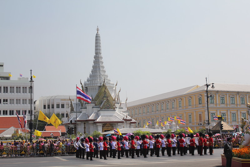 Poniżej – parada wojskowa z okazji urodzin króla. Miasto jest wówczas zakorkowane w miejscach przemarszu i okazjonalnych przemówień – nawet tuk-tuk – tradycyjna tajska moto taxi nie przeciśnie się.