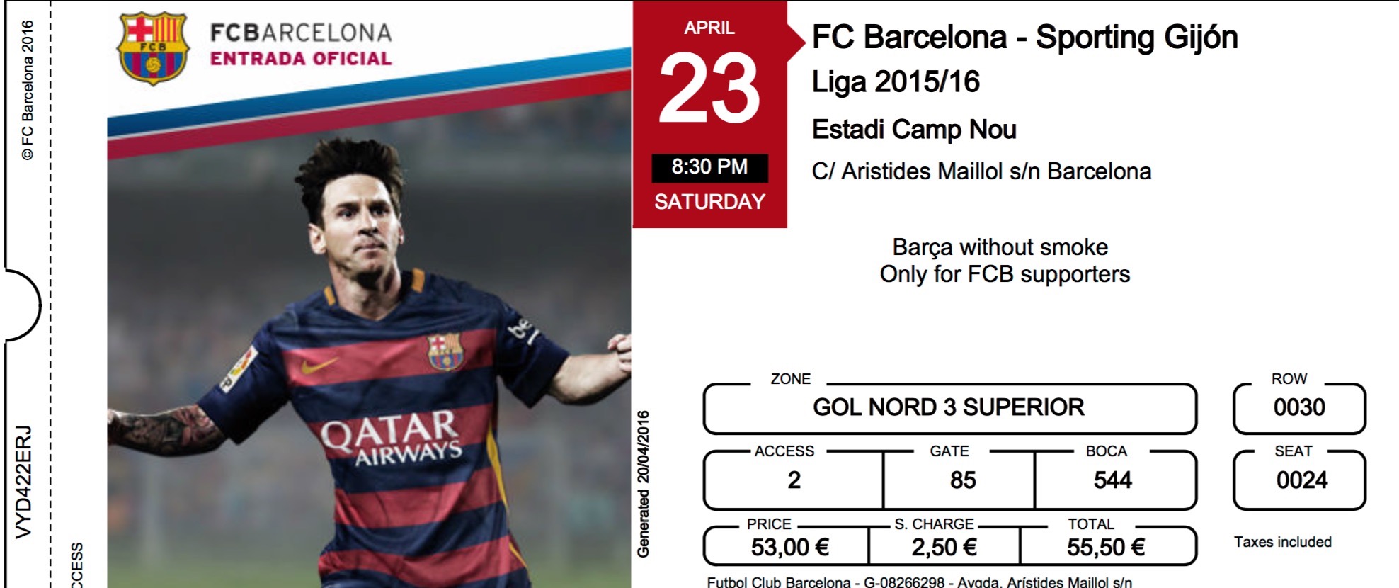 Mój bilet na FCB vs Sporting de Gijon – 23.04.2016