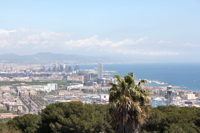 Z jednej strony port i morze, a także lądujące samoloty na lotnisko El Prat, po przeciwnej stronie La Barceloneta i plażowicze a następnie roztacza się niesamowity widok na całą Barcelonę – od Sagrada Familia poprzez Barri Gothic, Tibidado po stadion Camp Nou.