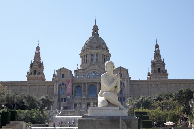 Potem wspinam się na szczyt wzgórza (jest dość wysoko) ale są ruchome schody (sic!). Na górze wznosi się Muzeum Narodowe MNAC – Museu National d’Art de Catalunya – Narodowego Muzeum Sztuki Katalońskiej, które prezentuje dzieła wielu epok od średniowiecza po współczesność. Można zobaczyć zarówno charakterystyczne dla epoki romańskiej wyobrażenie Chrystusa Pantokratora czy podwójne krzesło projektu Gaudiego. Wstęp – 12 €, pierwsza niedziela miesiąca – wstęp gratis.,