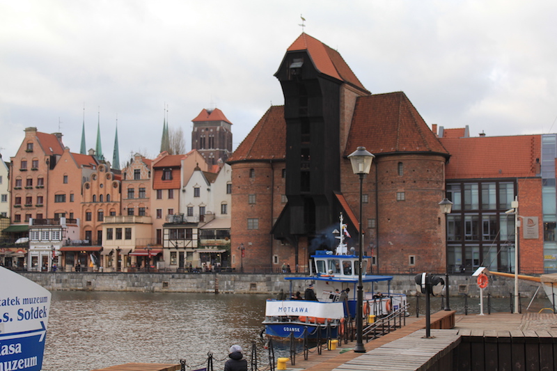 Po zwiedzeniu statku, mając wykupiony karnet przepływamy na drugi brzeg promem (2-3 min), aby zwiedzić charakterystyczny symbol Gdańska „Żuraw”. Jest to największy i najstarszy zachowany dźwig portowy w Europie. Za jego pomocą do XIX wieku wyładowywano towary ze statków oraz stawiano maszty. Żuraw to także brama miejska i element średniowiecznych fortyfikacji Gdańska. Po wojnie został odbudowany i przekazany Muzeum Morskiemu. W środku jest prezentowana wystawa stała „Gdańsk od XVI do XVIII wieku – życie portowe miasta. Wystawa ta pokazuje jak funkcjonowało miasto portowe w Złotym Wieku. Oczywiście zwiedzamy i sam żuraw. Jego serce to dwie pary kół deptakowych o średnicy 6 metrów. Uruchamiane były przez stąpających w nich robotników.