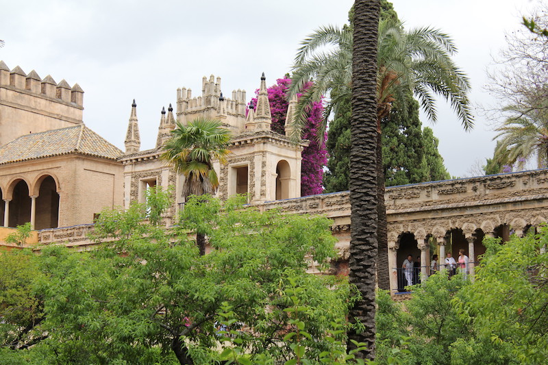 Alcazar – dawny pałac królewski, którego początki sięgają XI w., kiedy rezydowali tutaj przedstawiciele kalifatu kordobańskiego, rozbudowany w latach 1350–1369 przez Piotra I Okrutnego w stylu mudejar. Późniejsi królowie kontynuowali rozbudowę, przystosowując rezydencję do własnych potrzeb. Z ciekawostek – tutaj podejmowano decyzje o wysłaniu ekspedycji, m.in. Ferdynanda Magellana, a Krzysztof Kolumb został przyjęty przez Izabelę Kastylijską i Ferdynanda Aragońskiego po podróży do Ameryki. Pałac zawiera wiele sal, patios i ogrodów.(ogrody opisane osobno) Bogactwo ornamentyki, dekoracji ceramicznych i komnat sprawia, że sewilski Alcazar zalicza się do najwspanialszych kompleksów pałacowych w Hiszpanii.