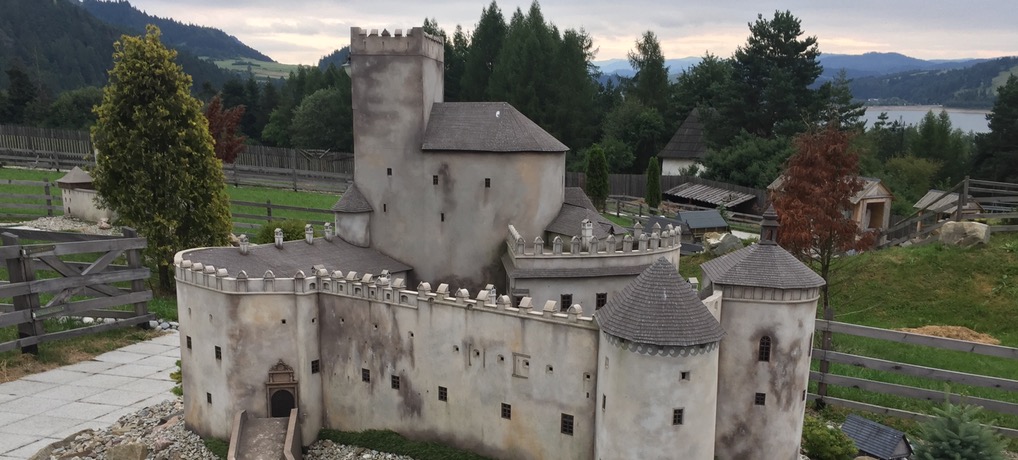 Zamek Dunajec w Niedzicy. Po zwiedzeniu zamku jak i spacerze po tamie, polecam udać się kilkadziesiąt metrów wzdłuż drogi w kierunku wschodnim do Parku Miniatur – Spiska Kraina.