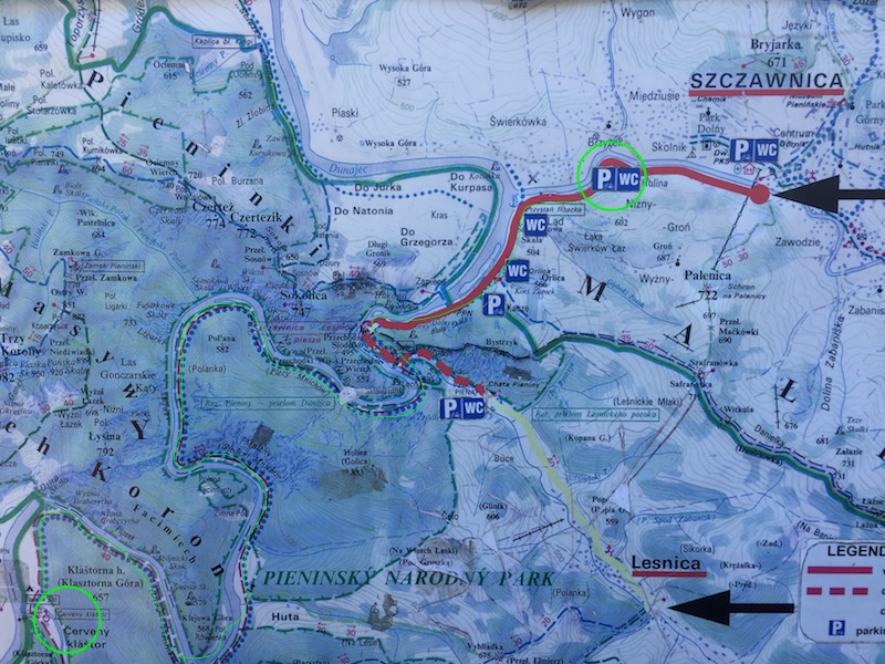 Rower wypożyczyłem przy parkingu piętrowym w okolicach pomnika Janosika (tu gdzie Grajcarek łączy się z Dunajcem). Trasa biegła wzdłuż ścieżki rowerowej – częściowo wybudowanej z funduszy unijnych wprost na Słowację. Miejscem docelowym na Słowacji był Czerwony Klasztor. Z początku ścieżka rowerowa to szeroki bulwar wyłożony kostką, natomiast tuż za granicą słowacką przekształca się w ubitą ścieżkę w lesie biegnącą wzdłuż Dunajca.