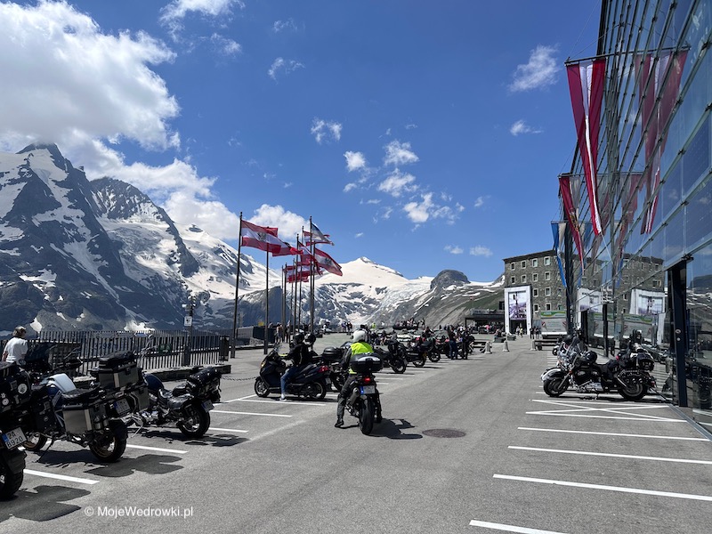 Do Glossglockner podjeżdżają również autokary z turystami. Tutejszy parking dla aut jest 4 kondygnacyjny – oczywiście bezpłatny. Na miejscu – niesamowite widoki na lodowiec i okoliczne szczyty górskie. Jest miejsce na małą wspinaczkę (do punktu widokowego, można też zejść do lodowca), na posilenie się i zakup pamiątek.