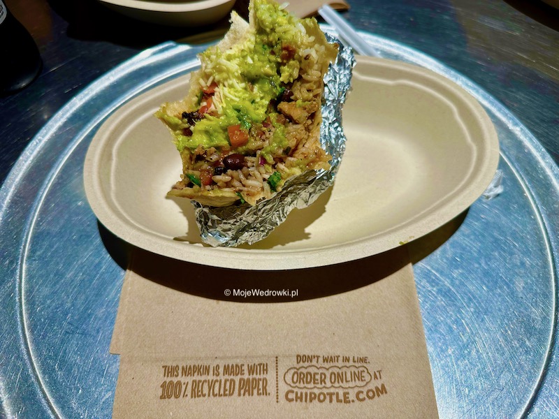 Na posiłek zdecydowaliśmy się wybrać kuchnię meksykańską i udaliśmy się do jednego z wielu barów Chipotle, aby posmakować smacznie podane dania z grilla meksykańskiego tradycyjnie zawinięte w dużą tortillę czyli burrito. Jedzenie jest tam smaczne, niedrogo i przede wszystkim szybko. Szkoda, że nie ma ich w Polsce. Na pewno znaleźliby mnóstwo chętnych.