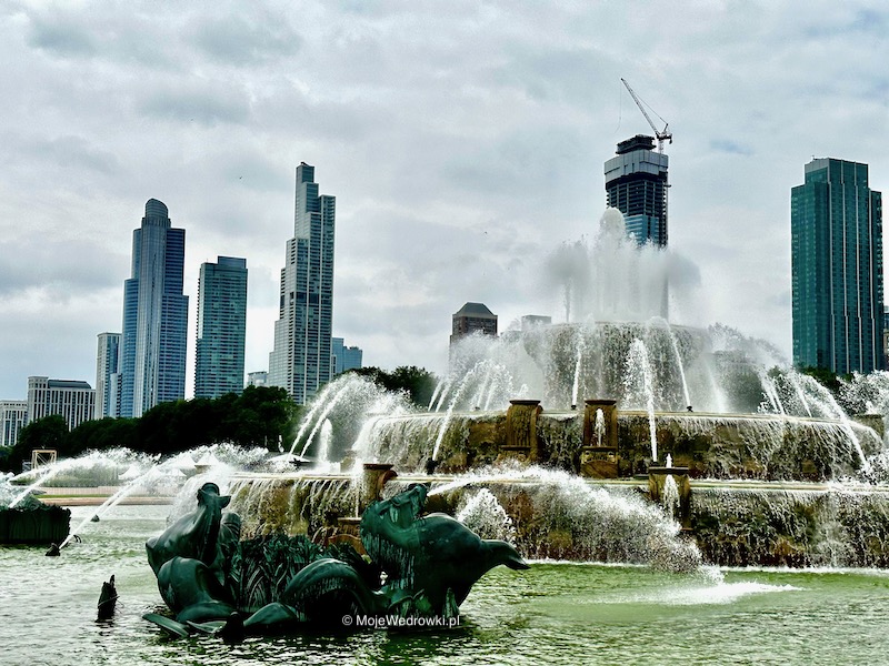 W Millenium Park obowiązkowy punkt to fontanna Clarence F. Buckingham Memoriał Fountain i Cloud Gate = Fasolka.