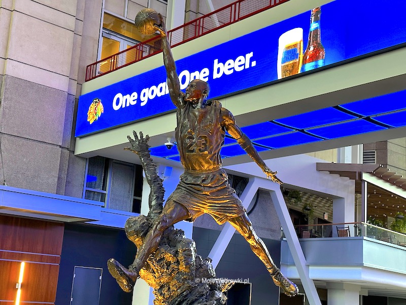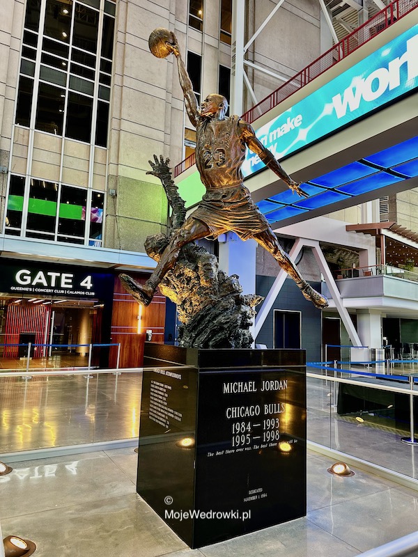 Kolejnym punktem zwiedzania było spotkanie z legendą NBA – Michael Jordanem w United Center – hali sportowej gdzie mecze rozgrywają Chicago Bulls & Chicago Blackhawks (NHL). Tego dnia nie było meczów, tak więc hala była otwarta tylko do 5 P.M., ale na spotkanie zdążyliśmy.