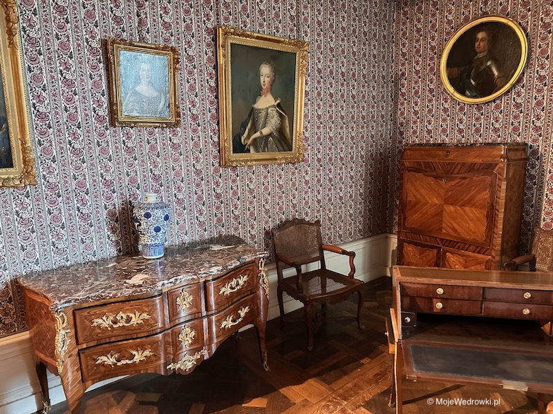 - apartamenty z XVIII w. Terakotę na podłogach zastąpił w nich parkiet, a ściany zostały pokryte tapetami, tkaninami i boazerią.