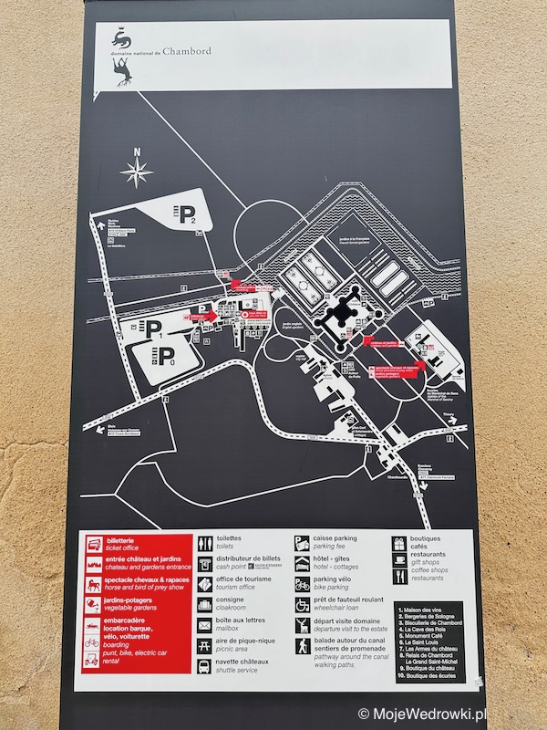 W weekendy na placu przed zamkiem obok restauracji ustawiane są stragany z lokalnymi wyrobami zarówno spożywczymi jak i typowymi pamiątkami. Dodatkowo polecam na udanie się na zwiedzanie z samego rana. Pozwoli to na zwiedzanie w mniejszym tłumie jak i możliwość zaparkowania bliżej zamku. My po zwiedzeniu Chambord udaliśmy się do kolejnego zamku na naszej liście – Chateau Royal de Blois.
