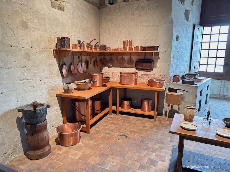 - kuchnie z XVIII wieku – czyli dawne pokoje kredensowe, cukiernia, spiżarnia i przechowywania owoców. Duże wrażenie zrobiła na mnie wielka kuchnia z okapem, piecem chlebowym i zestawem dawnych przyborów.