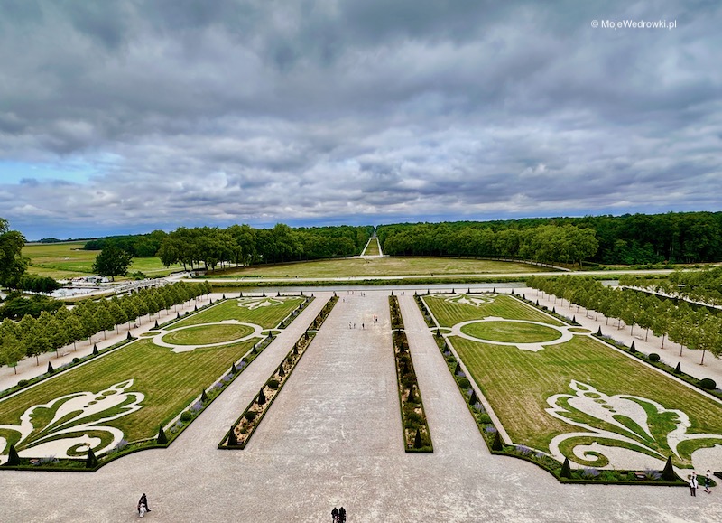 Chambord jest otoczony największym parkiem w Europie Zachodniej, o powierzchni ponad 5000 hektarów. To stanowi bogactwo samo w sobie. Tuż przed zamkiem znajduje się szkoła jeździectwa. Część z ogrodów, w związku z dużymi upałami we Francji wygląda niezbyt reprezentacyjnie, ale widok z okien pokazuje jakie są one rozległe. Zwiedzamy w sumie parter i pierwsze i drugie piętro zamku + tarasy na dachu – spokojnie trzeba zarezerwować sobie z 1,5h czasu.